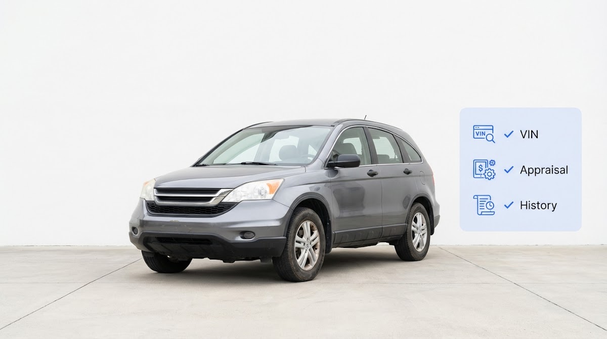 Add a vehicle history report and a physical inspection before final pricing. A history report can confirm title status, ownership records and reported damage, while an inspection identifies condition items that materially affect reconditioning estimates. Pairing appraisal outputs with a history report and inspection reduces surprises during negotiation.